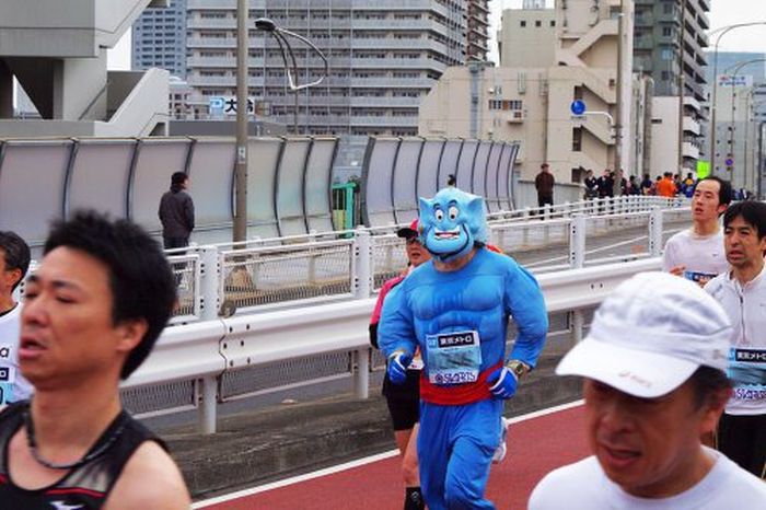 People in Quirky Costumes at the Annual Tokyo Marathon