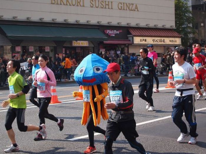 People in Quirky Costumes at the Annual Tokyo Marathon