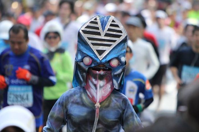 People in Quirky Costumes at the Annual Tokyo Marathon
