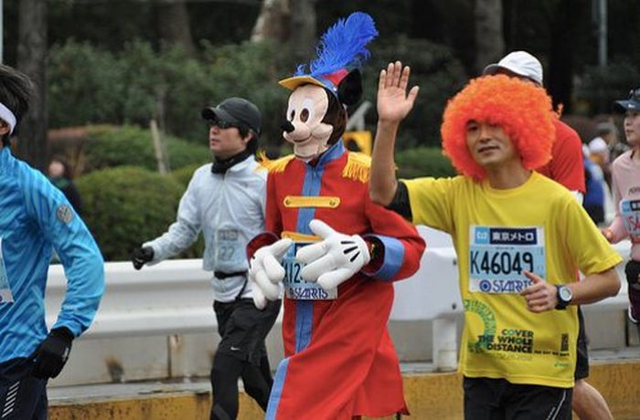 People in Quirky Costumes at the Annual Tokyo Marathon