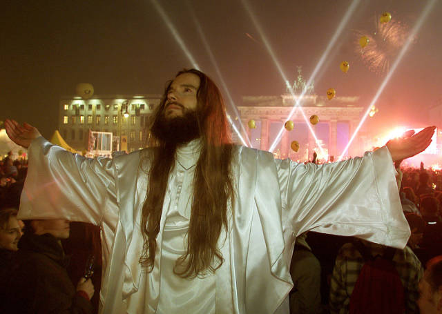 2000 — A man dressed as Jesus Christ welcoming the new millennium in Berlin