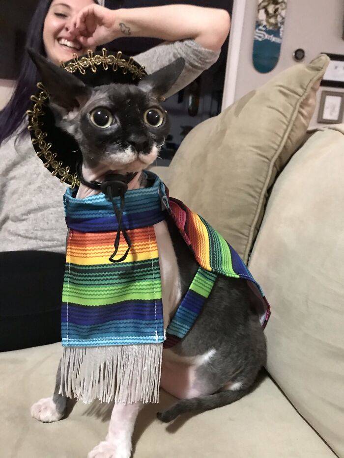 "A Friend Got Our Cat A Tiny Poncho And Sombrero For Christmas And I Can't Handle It"