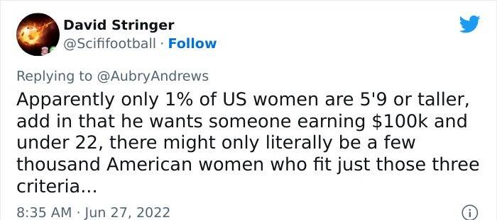 #1 Guy tries to list same kind of requirements and demands that women do and gets mocked and hated for it