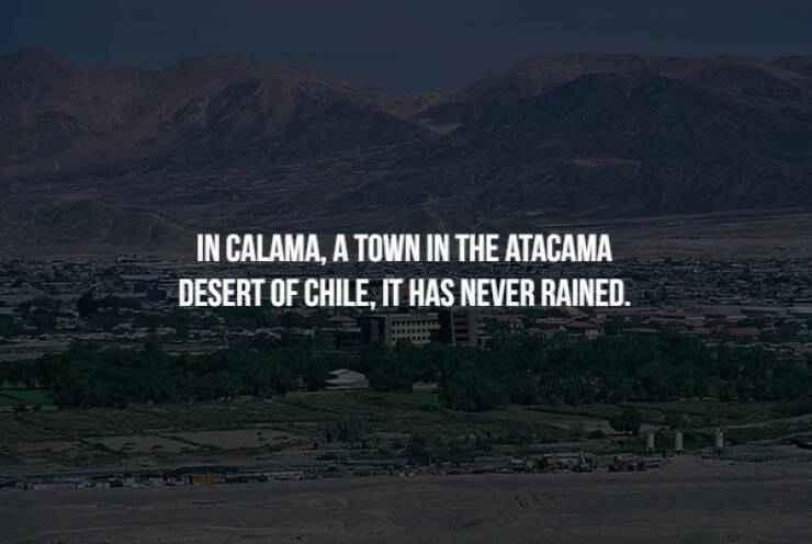 #46 True for recent geological times, even much further back than the time we've been measuring it. Calama sits in the rain shadow of the Andes Mountains.