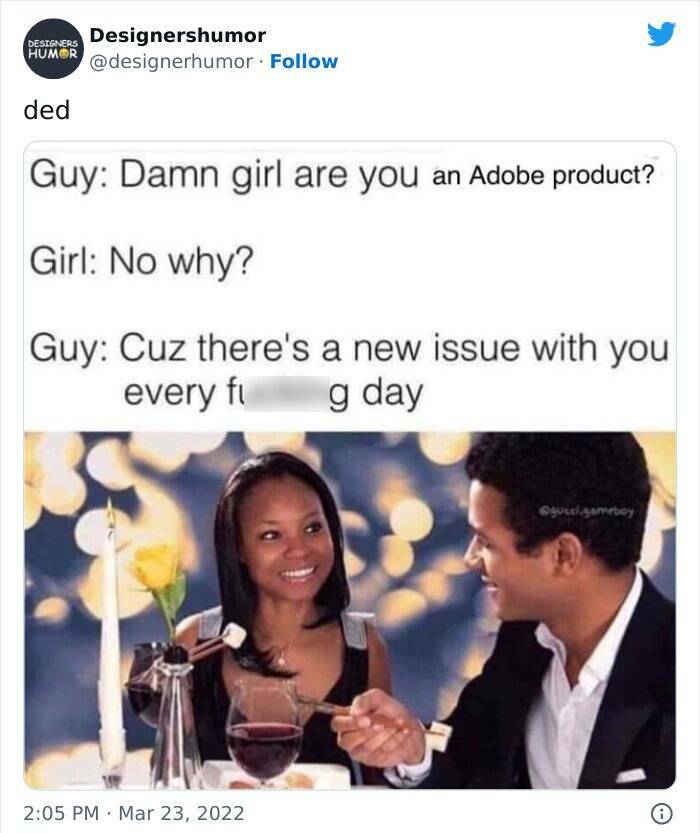 The first three images can be put into a general or industrial design category. All the rest are memes that graphic designers would post.