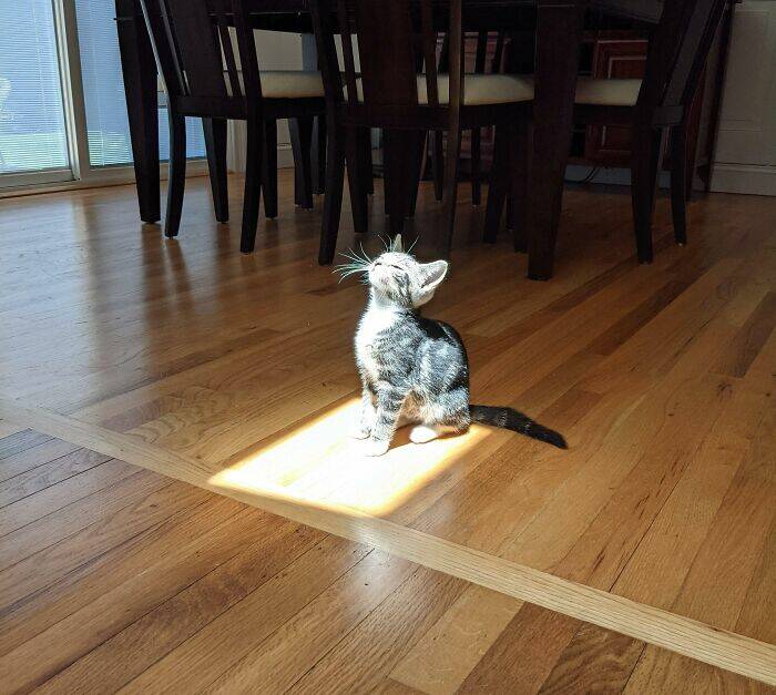 "My New Kitten's First Encounter With The Big Ball Of Flame In The Sky"