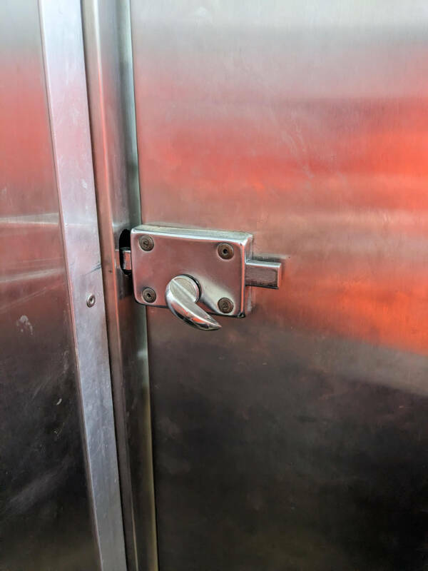 “Accidentally locked myself in the toilet stall at my new job. It won’t turn all the way open..”