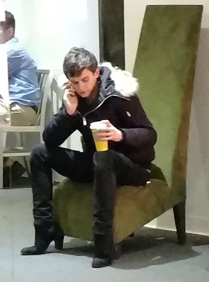“Due to the chair leg and this guy’s posture, it looks like he’s wearing high heels.”
