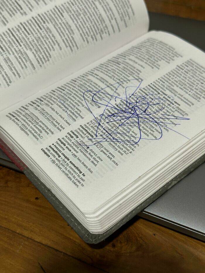 "My 3-Year-Old Daughter Did This Today To My Favorite Thesaurus Which I Held Perfect For Almost 20 Years Since School"