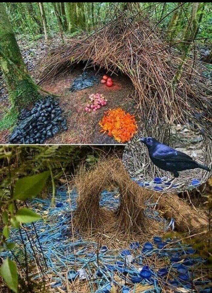 "Bower Birds Create Elaborate Structures Around Their Nest To Attract A Mate"