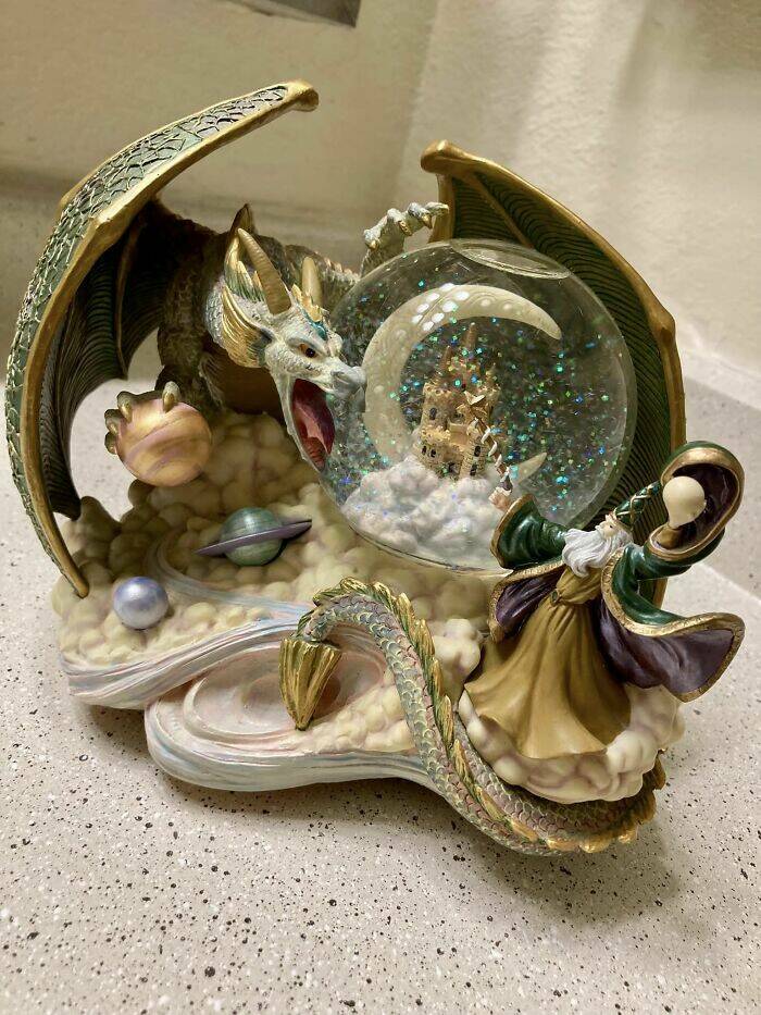 "Drove Across Town In Abq To Get This Magical Facebook Marketplace Snow Globe. It’s From The San Fransisco Music Box Company In True Mint Condition. Hardly Needed Cleaning And It Plays A Lovely, Whimsical Tune. It’s Perfect"