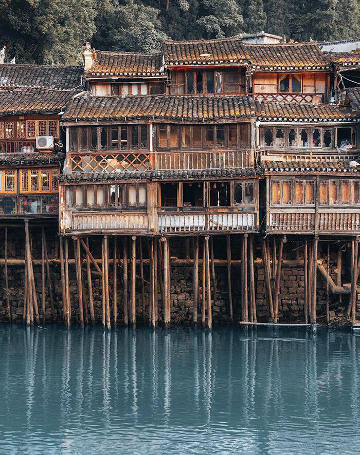 "These traditional homes were built next to a river and these stilts are used to support the houses to stop them from falling into the river. Would you stay the night in one of these?"