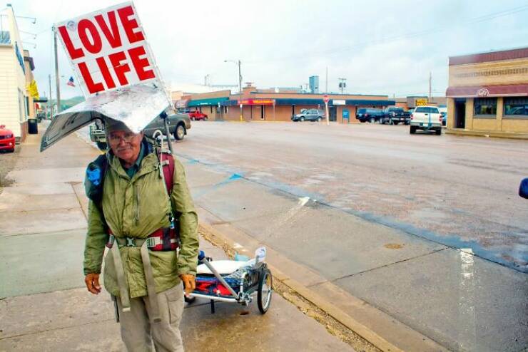"When Steve Fugate Lost His Two Children, He Hiked Across The United States For Over 12 Years With A Sign That Said "Love Life" To Remind People That They Can Always Overcome Life's Hardships, With The Right Mindset And To Never Give Up"