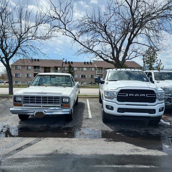 Here's how much the Dodge Ram 3500 has changed over 38 years — is it weird that I think the old one looks cooler, even if the bumper is falling off?