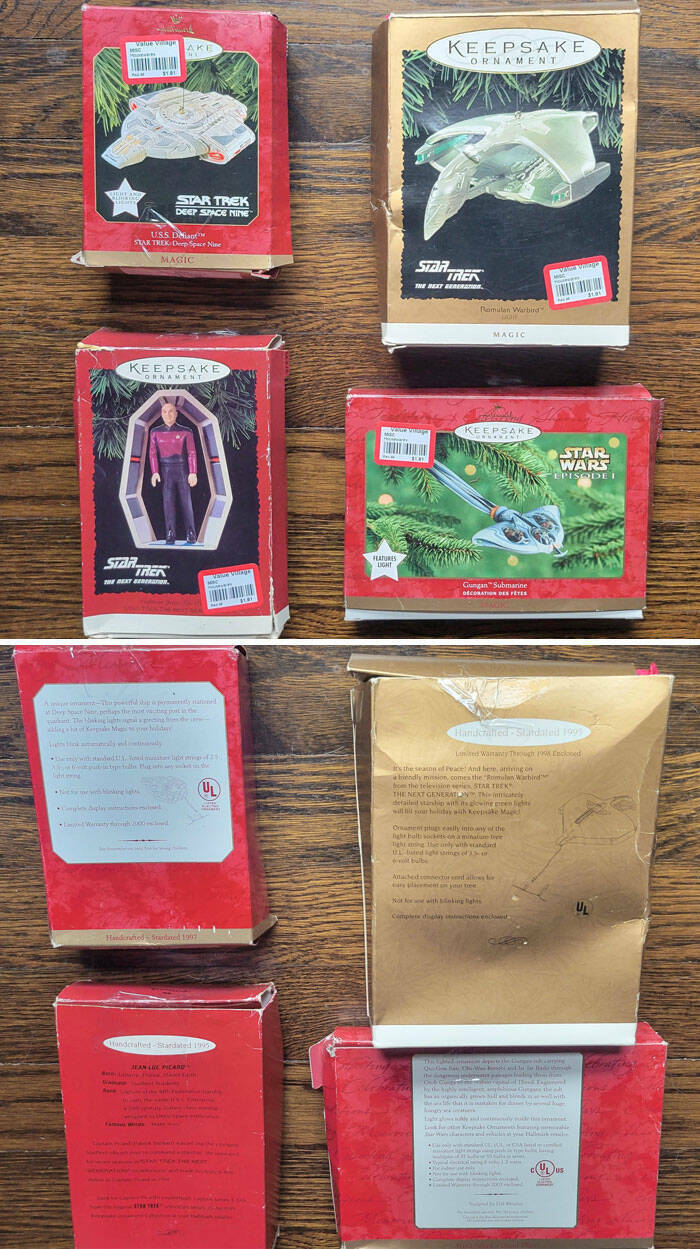 "Star Trek And Star Wars Christmas Ornaments From The 90s. It Cost Less Than 8 Dollars"