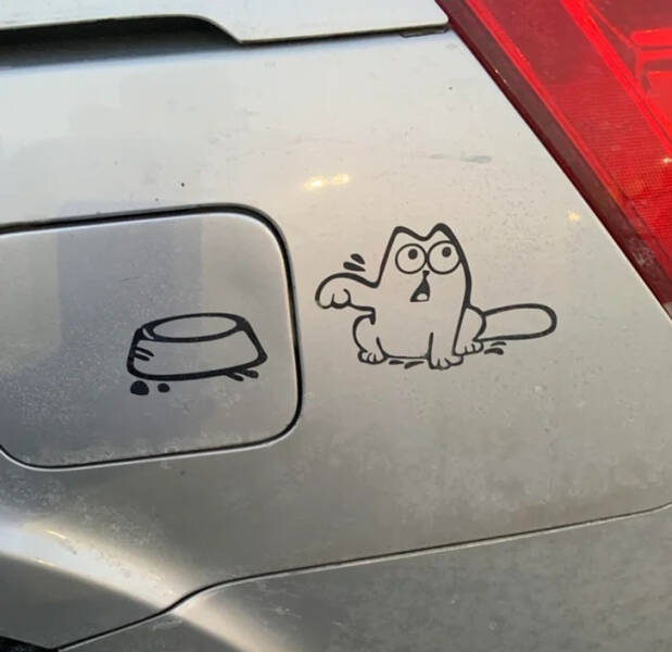 “Accurate (cute) gas tank sticker”