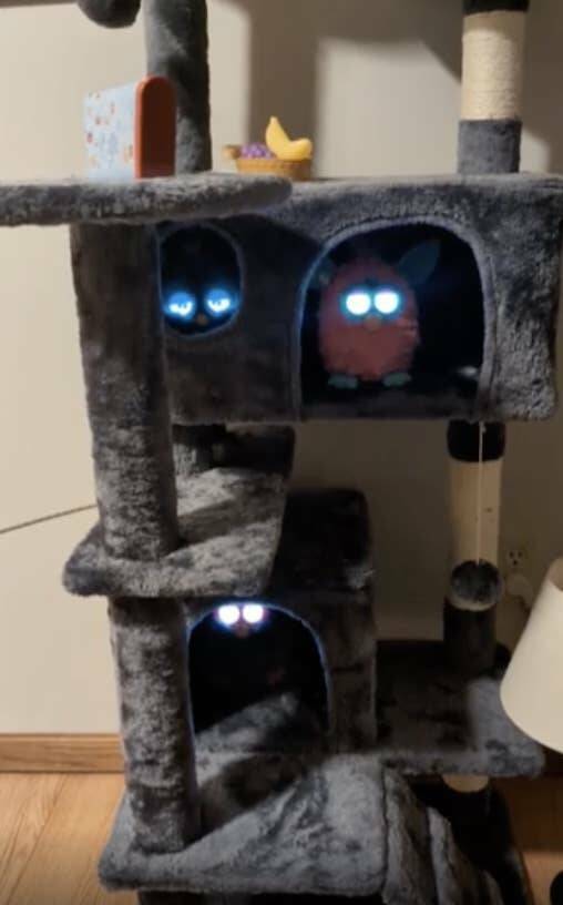 "My niece's Furbies live in this cat tree."