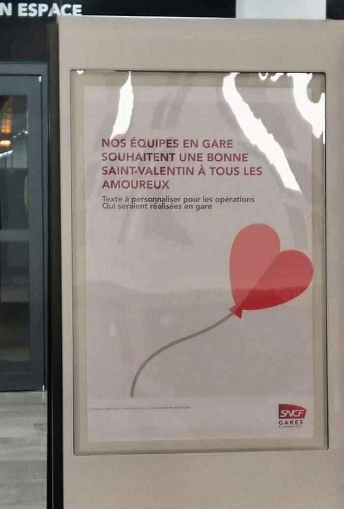 "Poster For Valentine's Day. The Text In Black Means "Text To Personalize With What The Train Station Will Do""