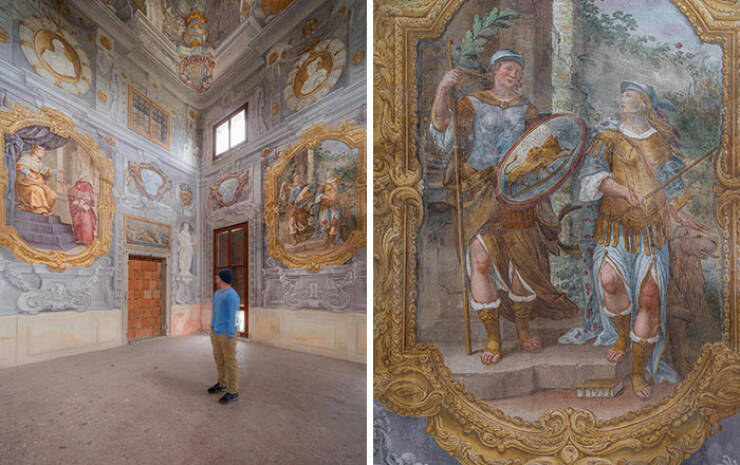 "Originally constructed in 1580, this almost 500 year old estate has been left behind for centuries in Italy. Filled with some of the most beautiful frescoes I’ve seen, this first room stuck out to me the most"