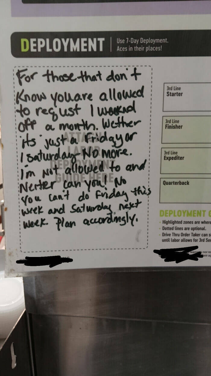 Then tell the managers to f@#kin' pound sand when they b*tch.