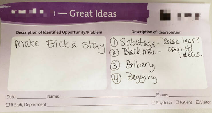 "My Company Has A "Great Ideas" Board. I Gave Notice Recently, Came Into Work Today And Found That One Of My Staff Members Left This On The Board. It's Good To Know I'll Be Missed"