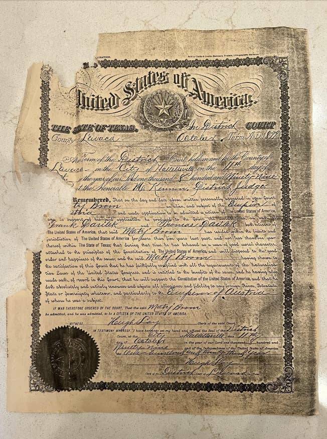 Here's an 1899 certificate of US citizenship — in which this person renounces their allegiance to Austria's emperor.