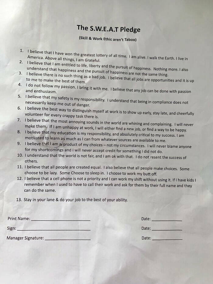 #28 From Mike Rowe's mikeroweWORKS Foundation. Requirements to qualify for a scholarship from the foundation. I don't see a problem with any item in the pledge!