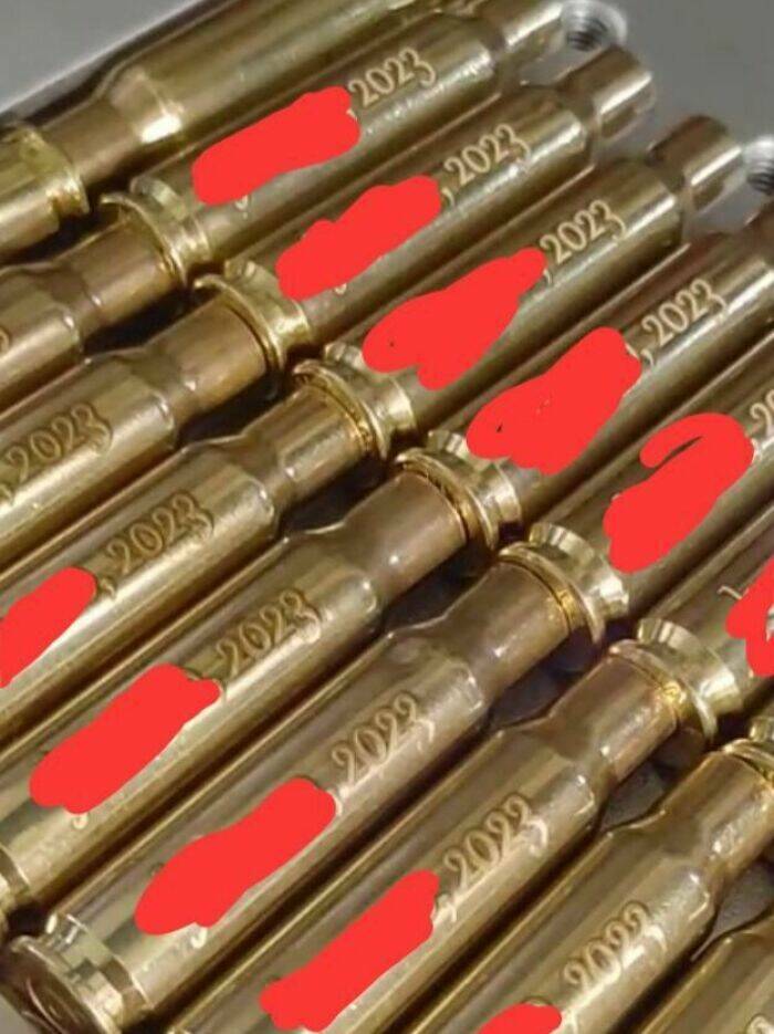 "Wedding Favors Are Engraved Bullet Casings With The Date And The Couples' Names On Them"