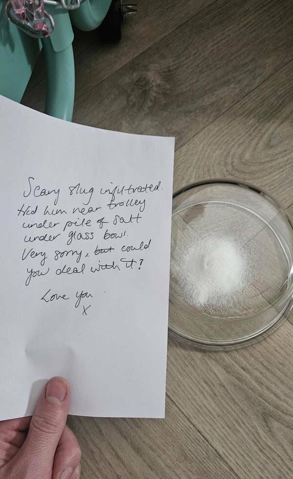 This wife is petrified of slugs, so when one came in the house, she went a little overboard: