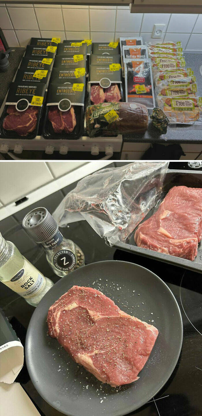 "5x 2x 200g Ribeyes from Free-Range Cattle, 8x Entrecôte from Free-Range Cattle, 3x 750g Buffalo Wings, 1x Pågen Loaf, & 10x BFree Gluten-Free and Dairy Free Bread!"