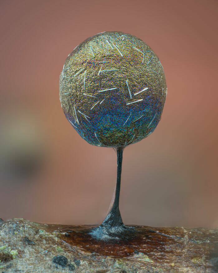 "Slime mold (Lamproderma arcyrioides)."