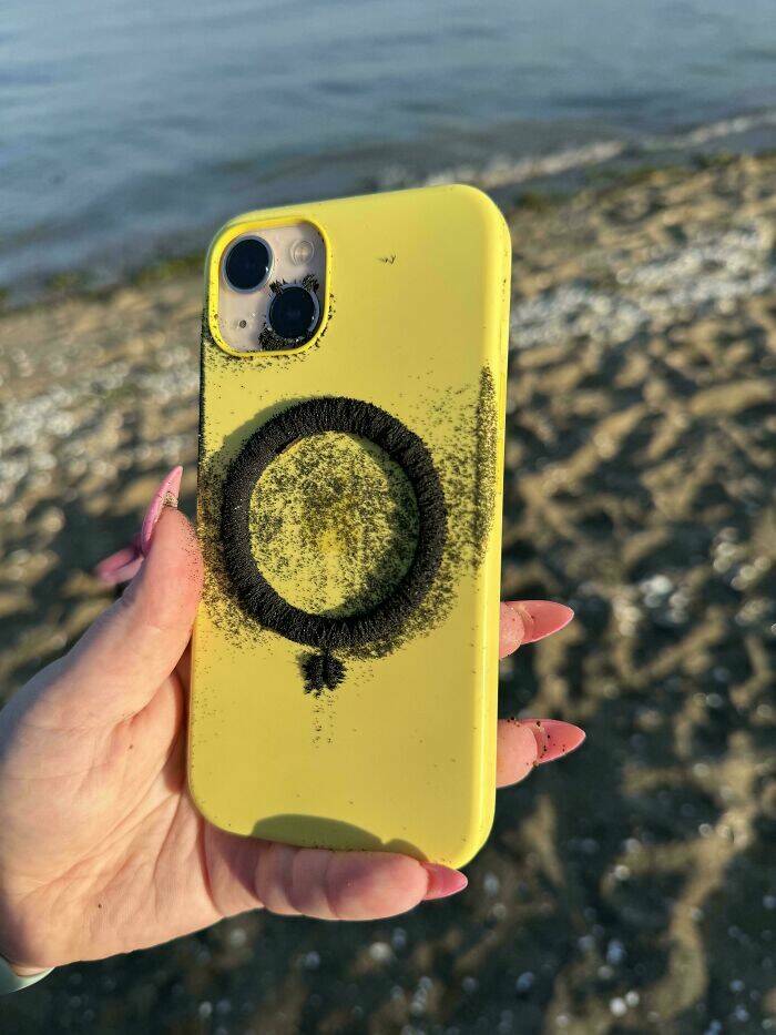 "Dropped My iPhone On A Beach And The Magsafe Case Attracted Titanomagnetite From The Black Sand"