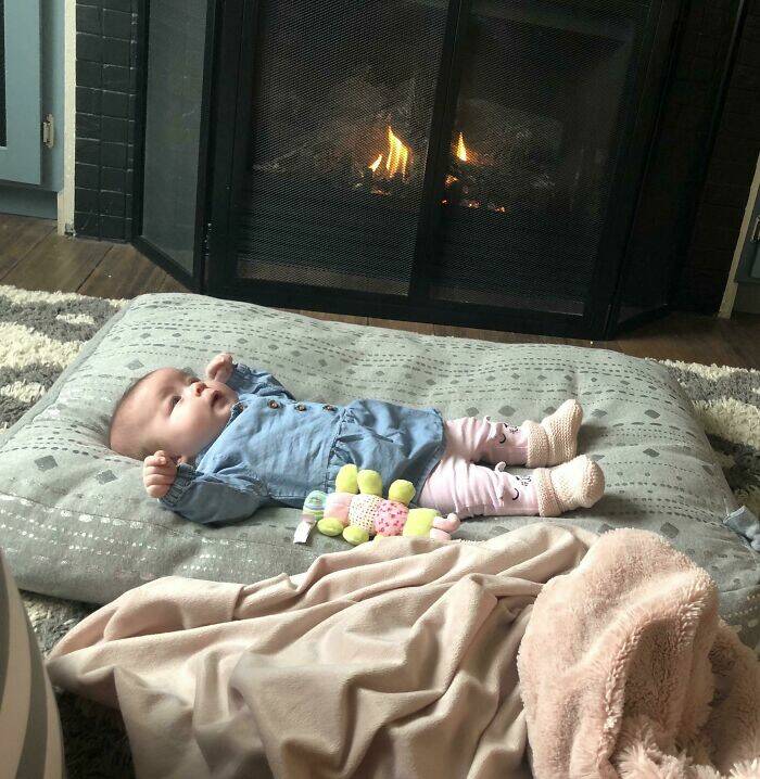 "Dog Beds Make For Affordable, Safe And Comfortable Places To Let Your Kid Stretch Out On The Floor"
