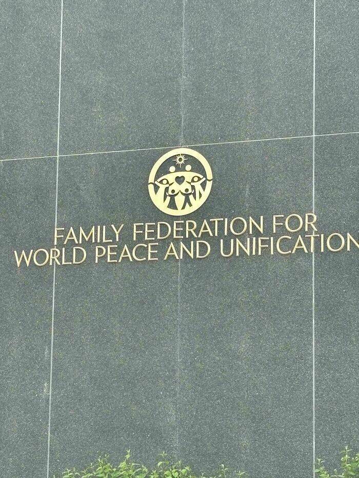 "Logo For The Family Federation For World Peace And Unification Found Across The Street From My Apartment Appears To Contain B***s"