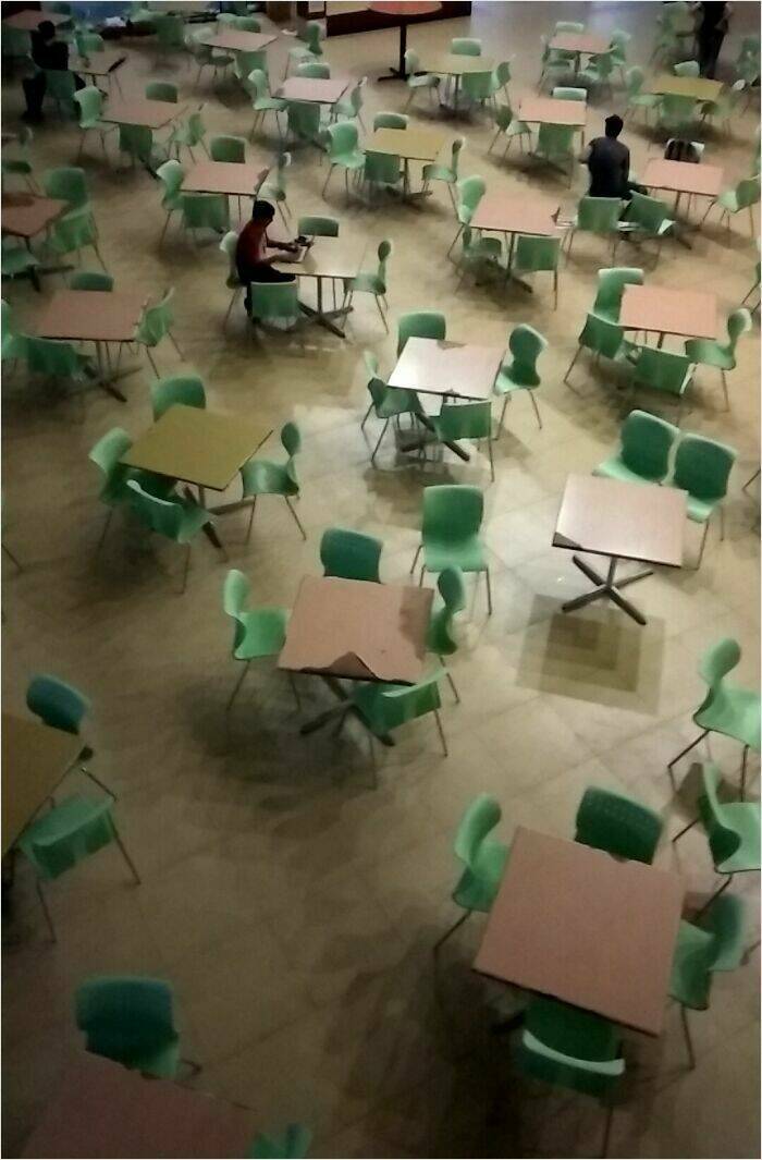 "The Lighting In This College Canteen That Casts A Perfect Pixelated (And Slightly Trippy) Shadow"