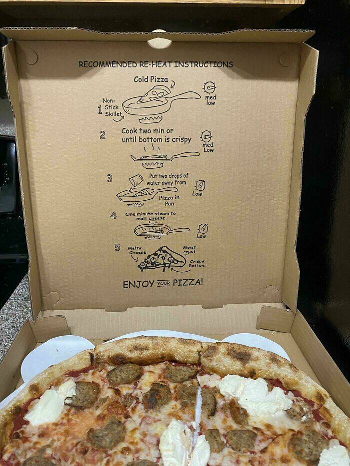 "My Pizza Came With Recommended Reheating Instructions On The Inside Of The Box"