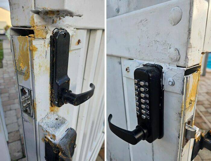 "$470/Mo Hoa Fees For Top Notch Contractor Work; Pool Gate Key Lock "Upgraded" To A Coded Lock"