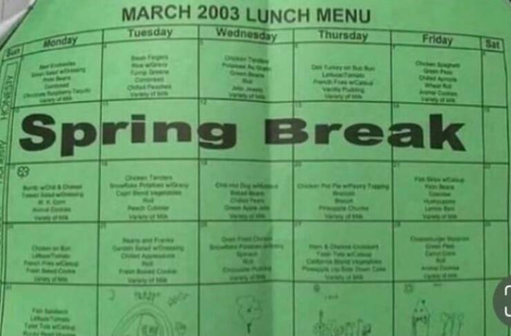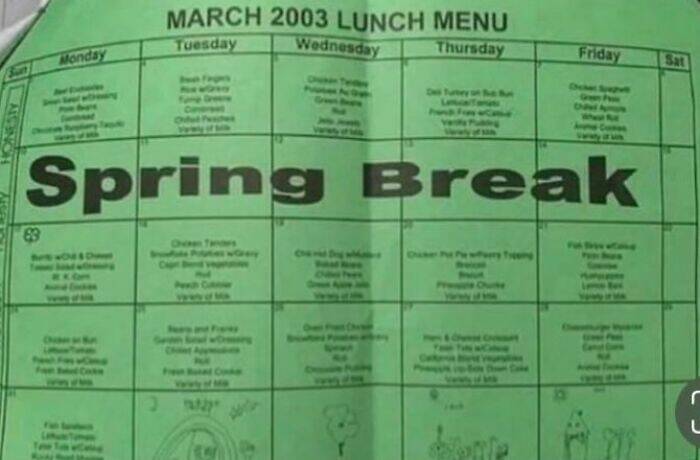 "School Lunch Menu Showing Days Off"