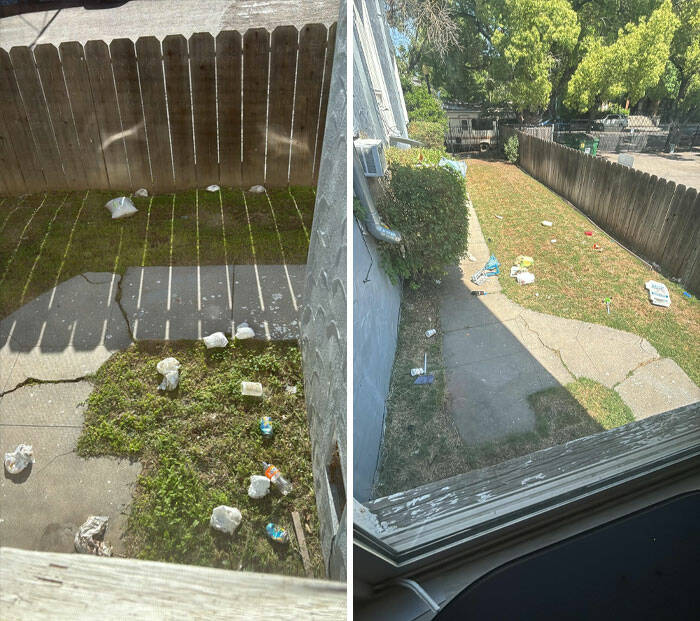 "Dirty Upstairs Neighbor. Have Upstairs Neighbors Who Keep Littering Outside My Kitchen Window. I've Mentioned It To Management (3 Separate Times ) Every Time And Nothing Gets Done And The Gardeners Just Mow Over It All"