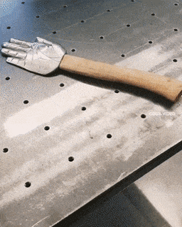 , He put his hand there so she won't bump her head on the corner of the table top.