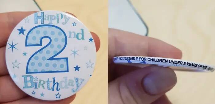 This button for 2-year-olds that's so small it's a choking hazard for anyone under three: