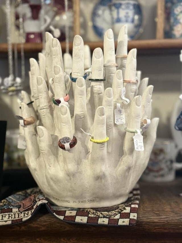 "Ring display in a consignment shop":