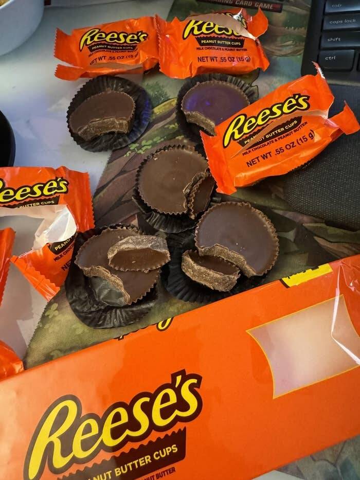 This entire five-pack of Reese's Peanut Butter Cups that had NO peanut butter in it...