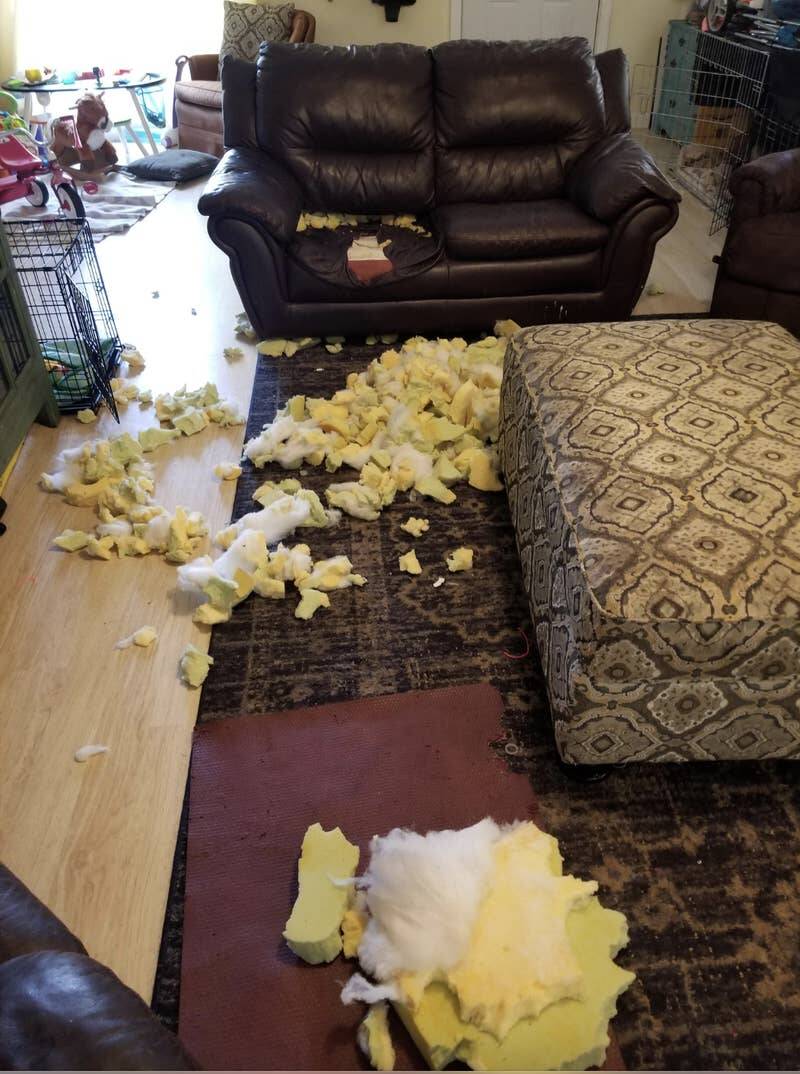 This person made the mistake of forgetting to crate their dog before they left the house:
