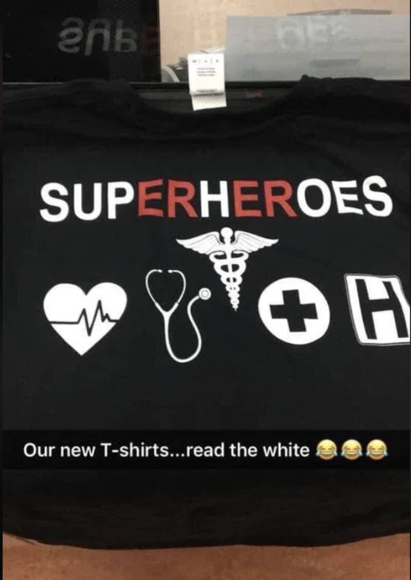 The person who made this shirt was so proud of putting the ER's in red that they didn't realize what the white letters spelled: