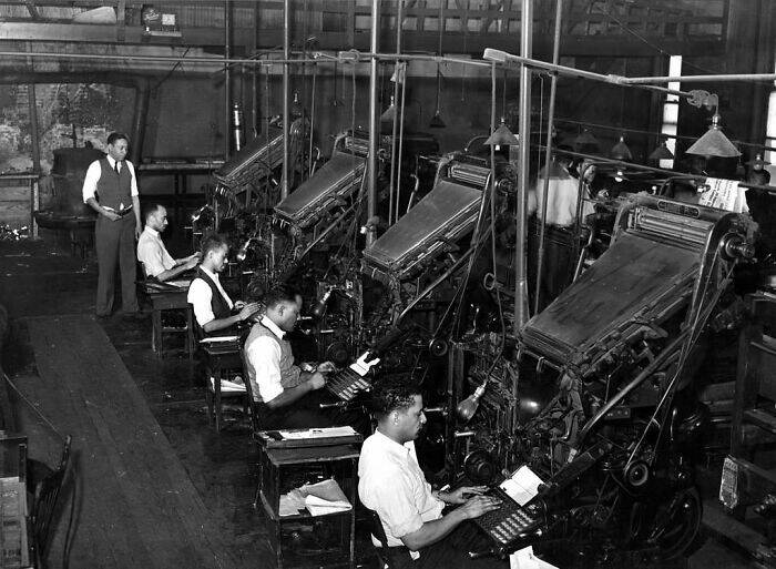 The Linotype Operator was a vital printing industry role, operating machines that cast lines of metal type for newspapers and books.