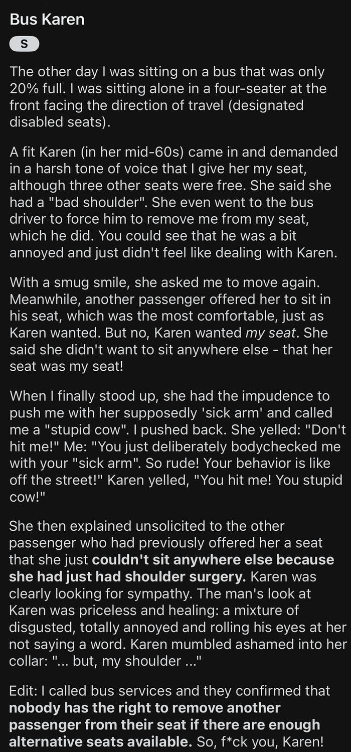 This woman felt entitled to another's bus seat due to some BS excuse: