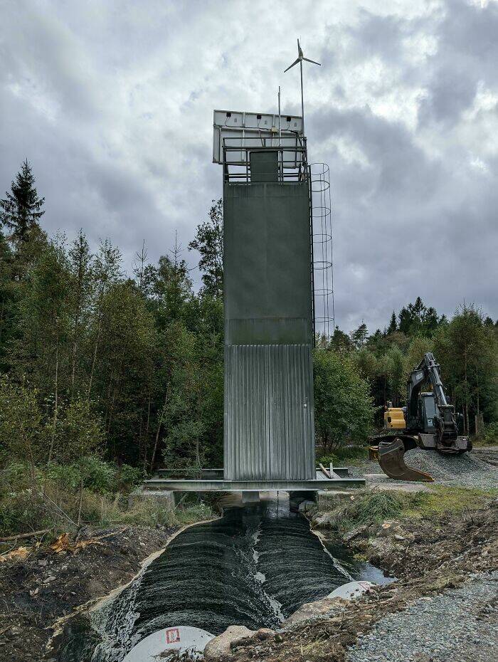 "What's This Tower, That Stands On A Bridge Over Stream And Dumps White Powder In It? Found In A Swedish Moor"