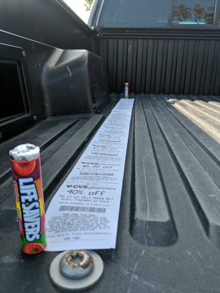 "Bought 2 Lifesavers At CVS And The Receipt Was Almost As Long As My Truck Bed"