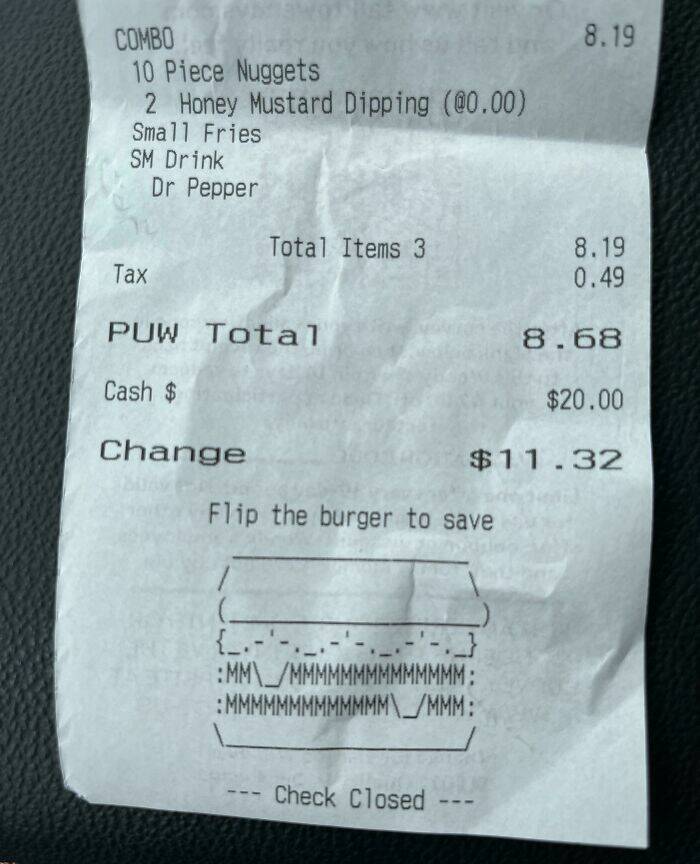 "My Wendy’s Receipt Has An ASCII Art Burger"